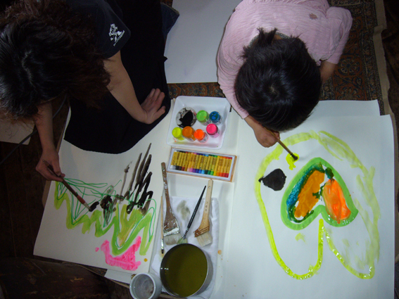 えかき『FNMD』さんによる絵のワークショップ。(上左側の写真)